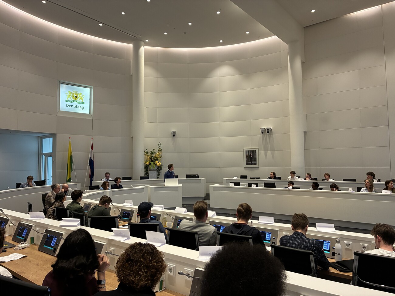 In de middag volgde een nagebootste raadsvergadering onder leiding van raadslid Fatima Faïd van de Haagse Stadspartij. De studentenfracties dienden moties in en stemden daar vervolgens over, geheel volgens de werkwijze van de echte gemeenteraad.