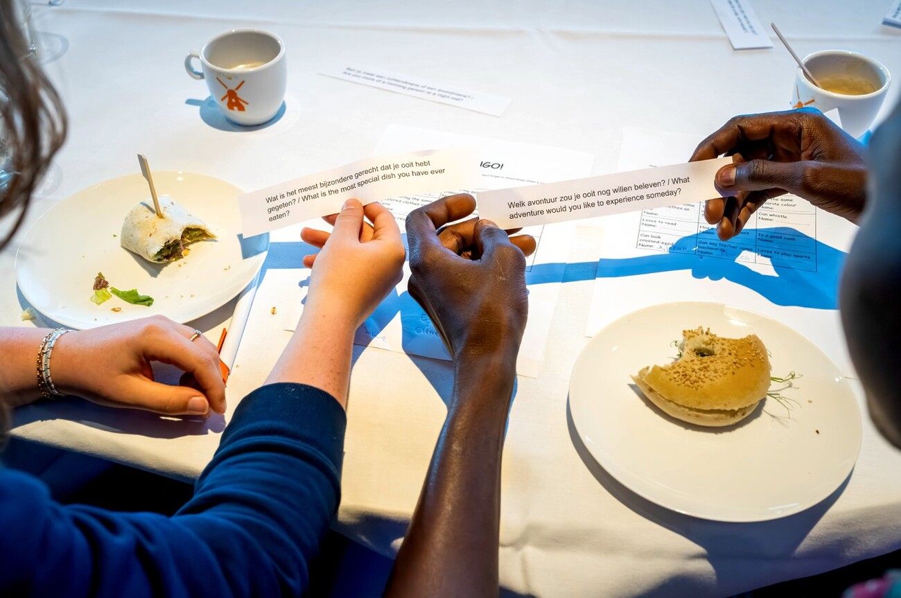 Na de toespraken was het tijd voor een spel met een interactieve bingokaart. Tijdens dit spel ging iedereen op zoek naar mensen met bepaalde eigenschappen, zoals de beste kok of iemand met hetzelfde kleur shirt. De bingokaarten waren in het Engels, maar al snel werd duidelijk dat de meeste jongeren beter waren in het praten met elkaar in het Nederlands. Ook al was het soms lastig om elkaars taal te begrijpen, iedereen deed enthousiast mee.