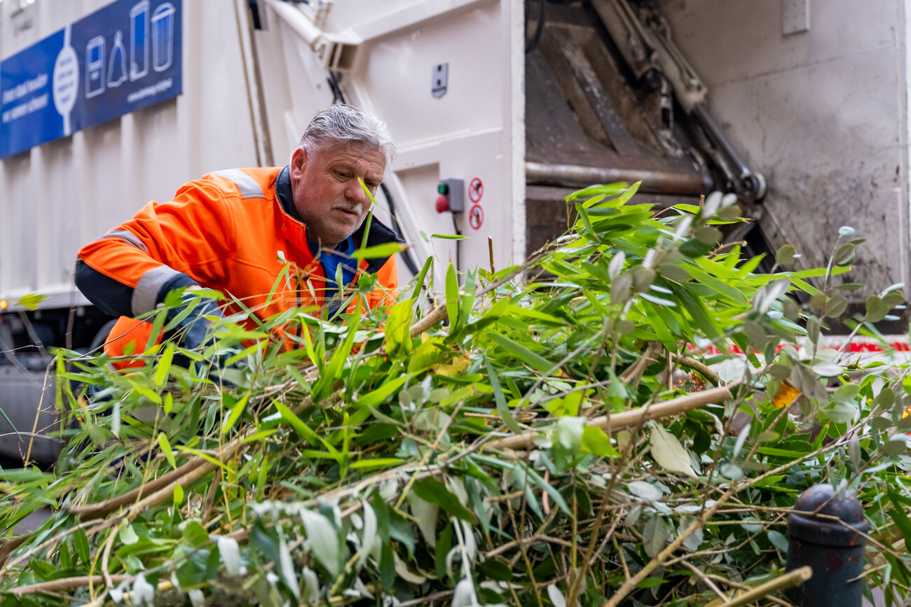 Een medewerker van de Haagse Milieuservice haalt takken op