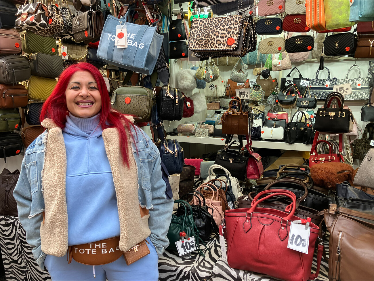 ‘Ik verkoop tassen, samen met mijn vriend. We hebben een vaste plek. De markt is een groot deel van ons leven, de nieuwe regels helpen ons om te groeien. Het moet wel betaalbaar blijven voor ons, de gemeente snapt dat ook en is best wel voor ons bezig. Een goede markt is belangrijk, mensen hier hebben het nodig, ook voor de sociale contacten. Want de markt, die maak je samen.’