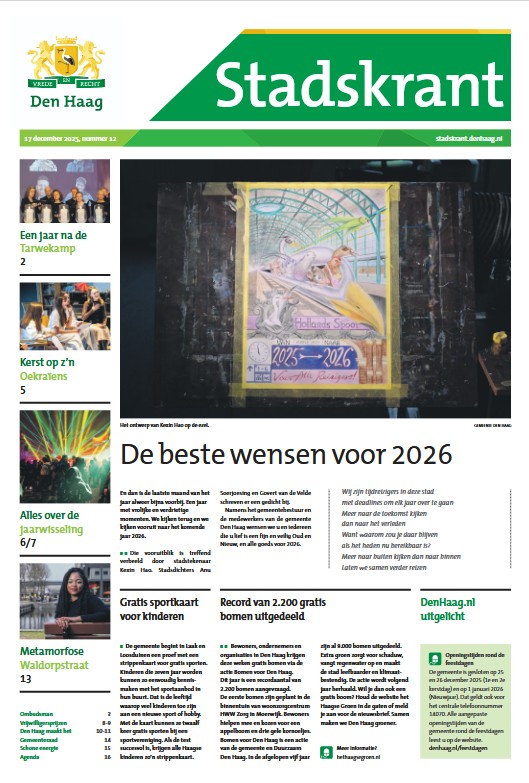 En ook in deze Stadskrant: Den Haag herdenkt de Tarwekamp. Haagse Vrijwilligersprijzen uitgereikt. En hoe vier je kerst als je ver van huis bent? Zo is die voor Oekraïners in Den Haag toch dichtbij. De krant van 17 december wordt bezorgd in uw huis-aan-huisblad.