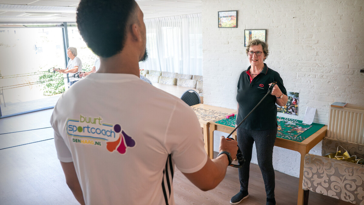 Sinds december 2023 werkt Giovanny in Loosduinen. Hij vindt het werk mooi en zinvol. ‘In Loosduinen wonen veel senioren. Juist voor hen is bewegen belangrijk om fit te blijven. Het verbetert de gezondheid. En het helpt ook tegen eenzaamheid. Dat is iets wat hier speelt.’