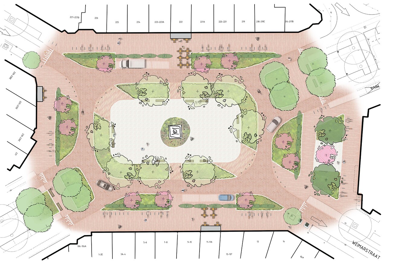 Het schetsontwerp voor het Regentesseplein heeft de volgende onderdelen: