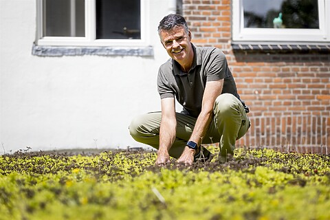De Haagse ondernemer Robin Sip legde met subsidie een groen dak van 140 m2 aan op zijn bedrijfspand.