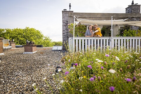 - Een groen dak vangt regenwater op. Dit belast het riool minder.