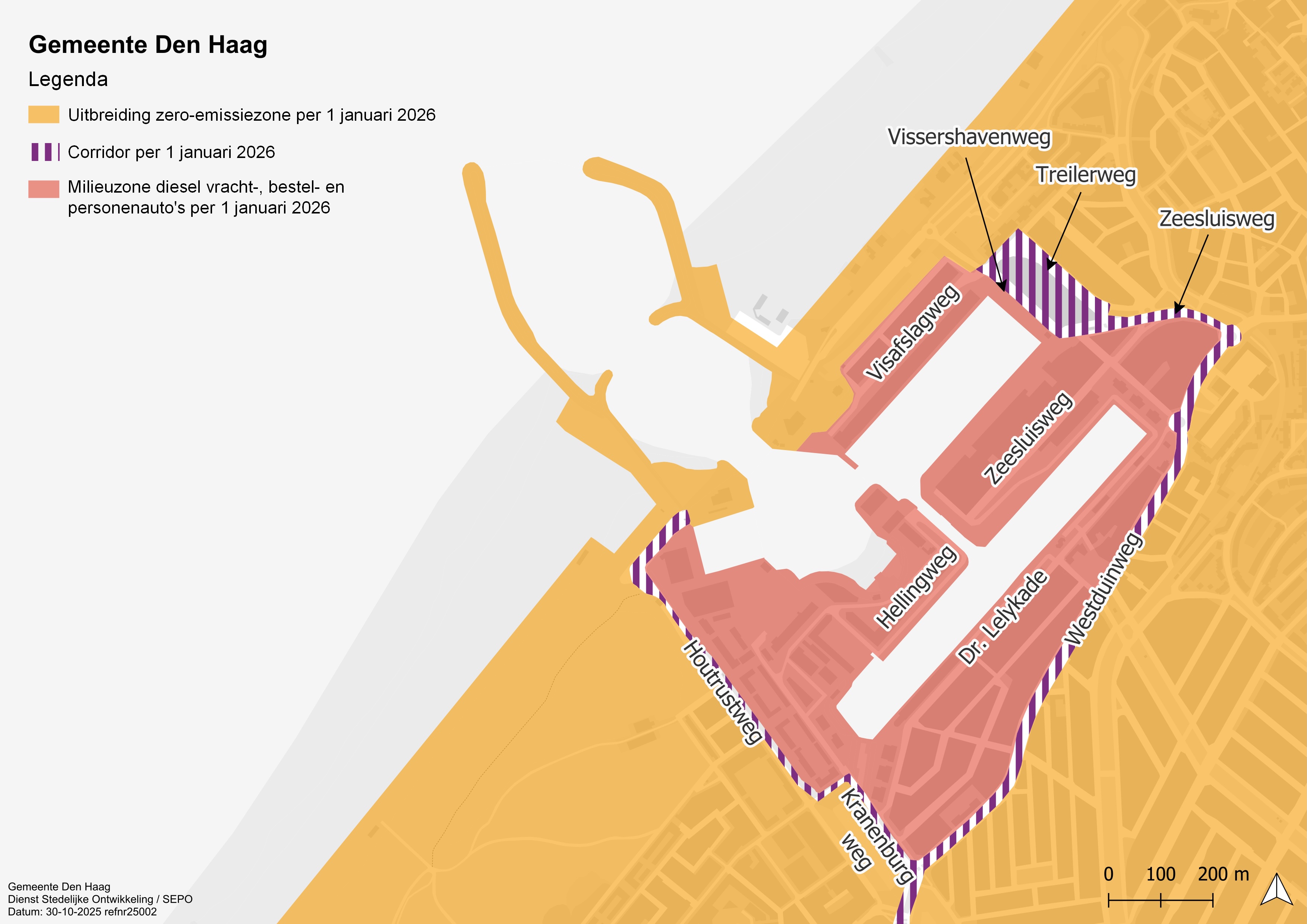Vanaf 2026 geldt in het havengebied van Scheveningen ook een milieuzone. Deze geldt voor zowel zakelijk als privé verkeer. Zie hiervoor de Begin externe link: kaart van Den Haag met daarop de zero-emissiezone als de milieuzone(Externe link), eind externe link. in de haven.