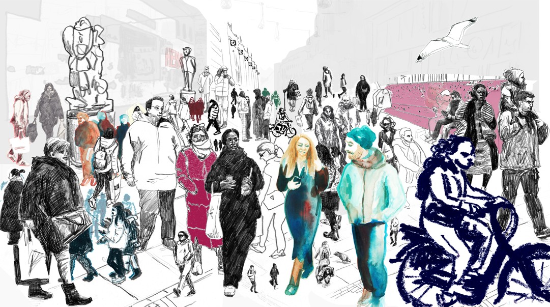 Van 2023 tot 2025 was illustrator en beeldend kunstenaar Babette Wagenvoort de eerste Haagse Stadstekenaar. Zij bracht Den Haag in beeld door bekende en onbekende Haagse plekken te bezoeken waar mensen samenkomen. In haar tekeningen legde zij de ervaringen en belevingen vast van Haagse inwoners. Babette Wagenvoort woont en werkt in Den Haag. Hieronder ziet u een van haar tekeningen.