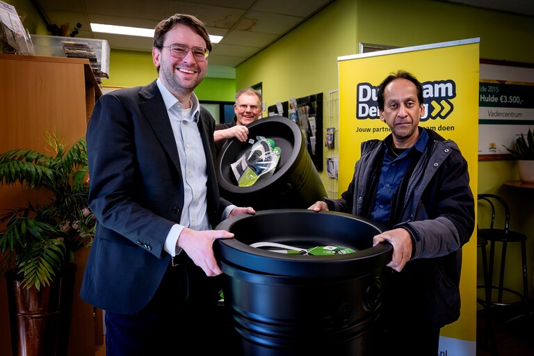 Maar liefst 524 bewoners hebben de afgelopen weken een regenton opgehaald. Samen vangen zij met hun regenton minimaal 81.220 liter regenwater op. Dankzij steun van de gemeente konden bewoners een grote regenton aanvragen. Hier werd enthousiast gebruik van gemaakt. Duurzaam Den Haag organiseerde de actie. Wethouder Robert Barker (Buitenruimte, Groen) hielp zaterdag 14 februari een handje bij uitdeelpunt het Vadercentrum in Laak.