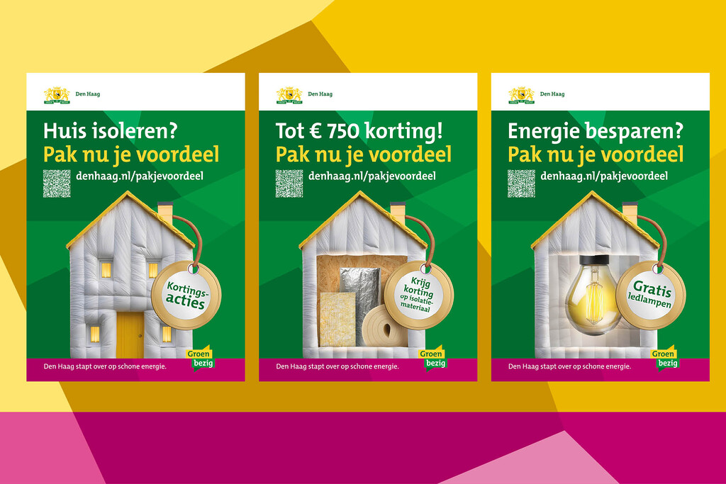De campagne Pak je voordeel! is een initiatief van de gemeente Den Haag om inwoners te helpen met het isoleren of verduurzamen van hun huis, ongeacht of ze huren, huiseigenaar zijn of lid zijn van een VvE. Op de website is meer informatie te vinden over verduurzaming van je huis met isolatiekorting en subsidies, maar ook over maatregelen die meteen voor een lagere energierekening zorgen, zoals radiatorfolie en tochtstrips. Ook kunnen inwoners meedoen aan verschillende acties voor wijken met slecht geïsoleerde huizen, of de collectieve inkoopactie voor warmtepompen van stichting Eigen Huis.